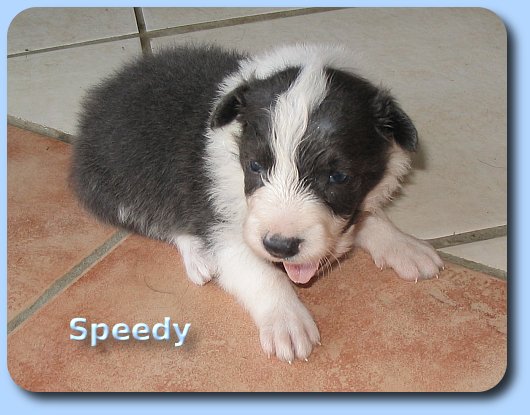 Speedy was a quiet little blue and white boy, later called Rocky.