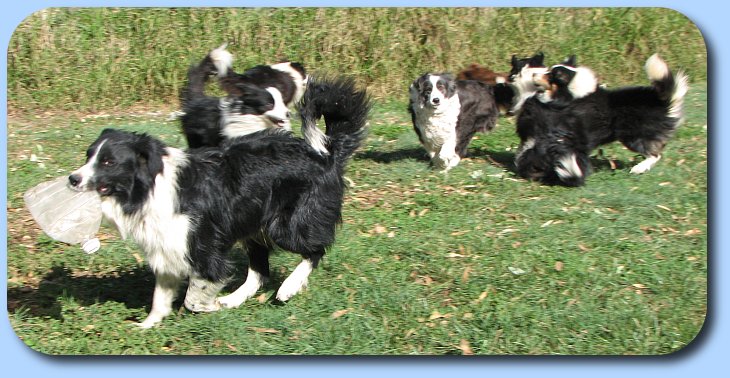 yard. Duke is the ladder guard, and Mallie just likes to run the edge.